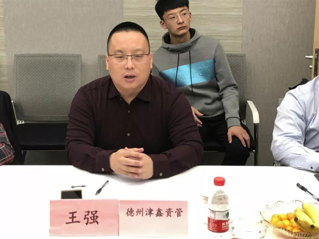 首先,王强总经理简单介绍了德州津鑫资产成立的背景、股权结构及目前工作开展状况,德州津鑫资产是在国家大力深化供给侧改革和推进落实新旧动能转换的大背景下,省内为数不多的混合所有制改革的有效成果,股东由阿甘担保、夏津财金及德州财金构成,目前正筹划组建夏津新旧动能转换产业基金;王总前瞻性地表达了在创新理念下,整合各种优势资源并通过专业团队对该基金运作的信心和期待。